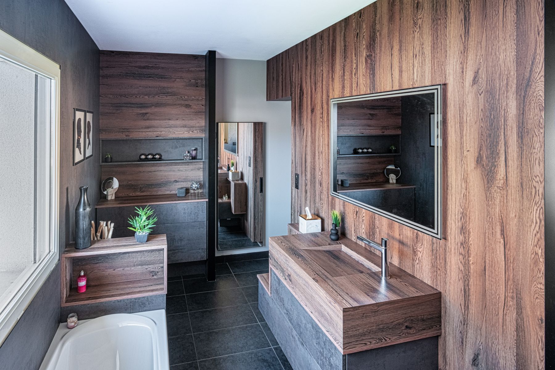 - Fabrication sur-mesure et pose : meubles de salle de bain et cuisine, agencements intérieurs, dressings, placards, bibliothèques... Conception des plans 3D.