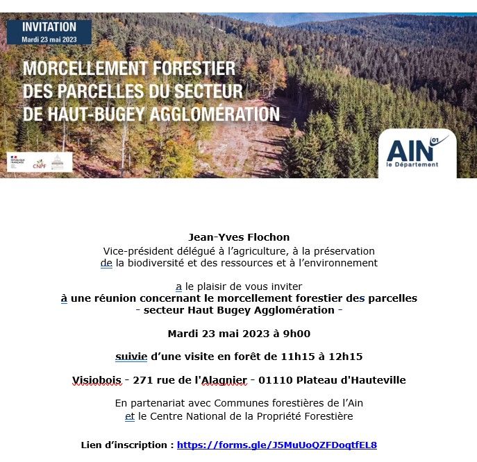 - mardi 23 mai de 9 h à 11 h à VisioBois - 271 rte de l'Alagnier - 01110 PLATEAU d'HAUTEVILLE. Inscription ICI