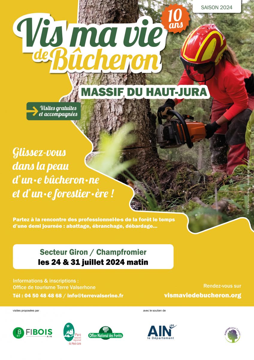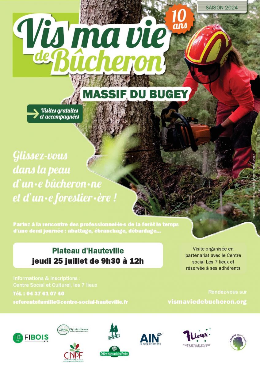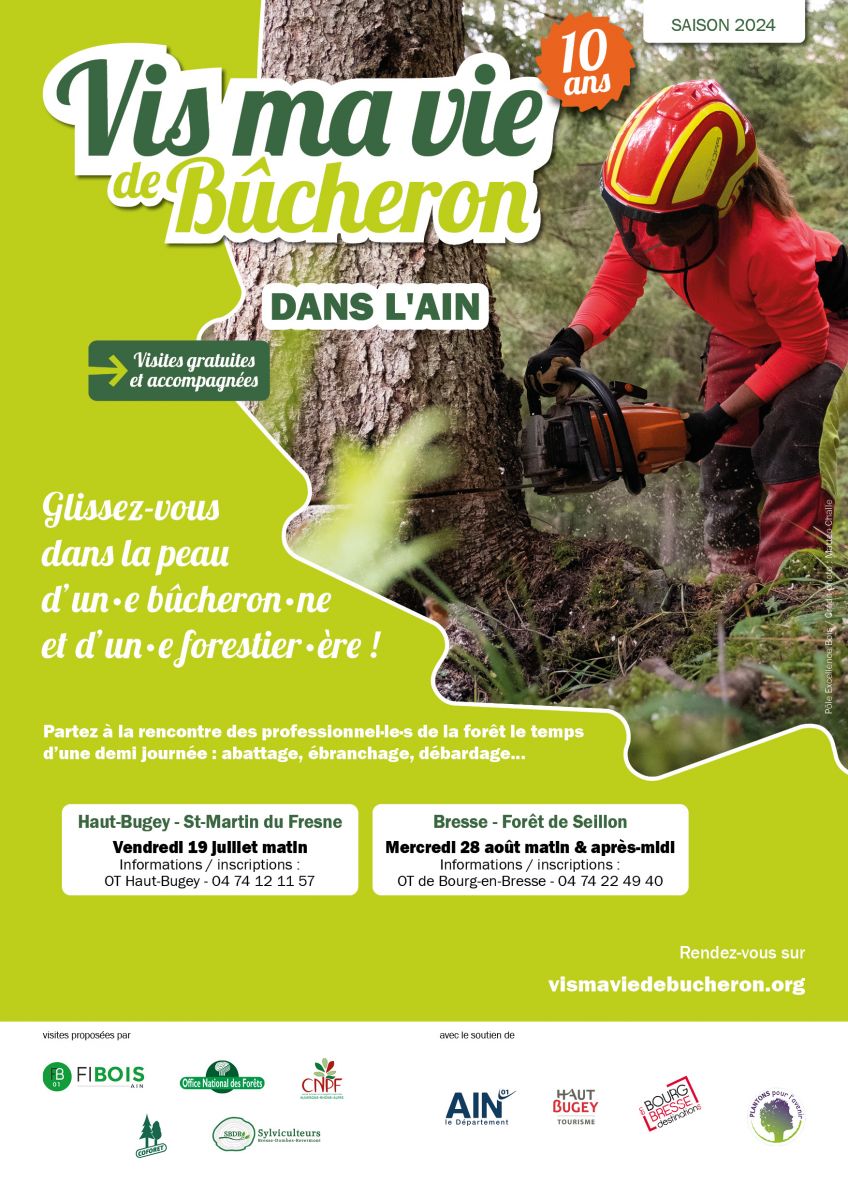 Dans l'Ain, 6 visites Vis ma vie de bûcheron sont programmées en juillet et août 2024. Découvrez le programme et inscrivez-vous !